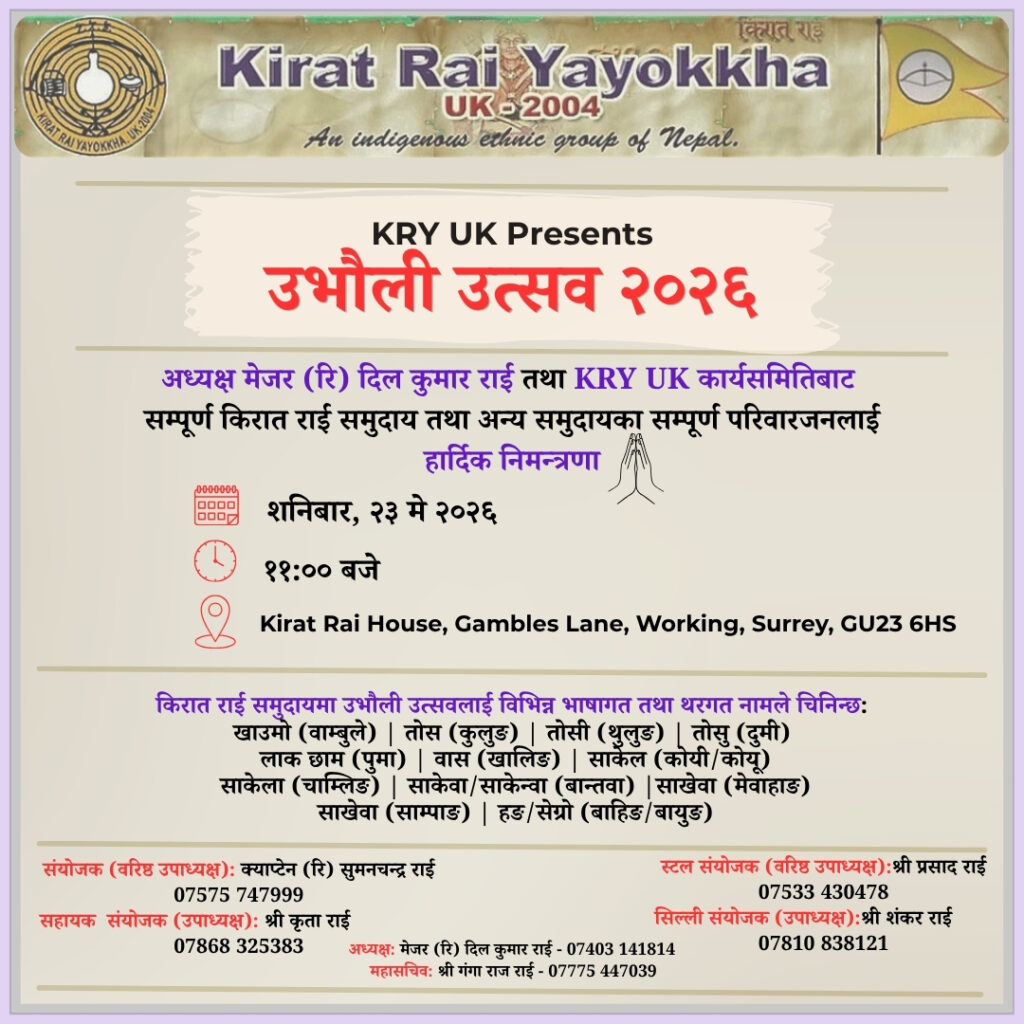 KRY UK organises two of the most important annual cultural celebrations of the Kirat Rai community: Ubhauli “Ascending”and Udhauli “Descending”.