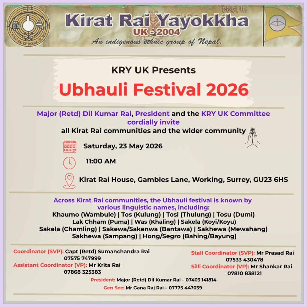 These events attract participants from across the United Kingdom, including Surrey, Hampshire, Kent, London, and beyond, making them important national gatherings for the Kirat Rai community.